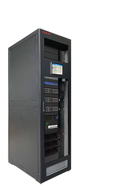 一体化机柜采用全封闭式架构,将铁锂电池、UPS、机架式空调、机柜系统、管理系统一体化集成, 产品占地面积小、部署灵活、快速扩容,满足客户小型化定制需求。